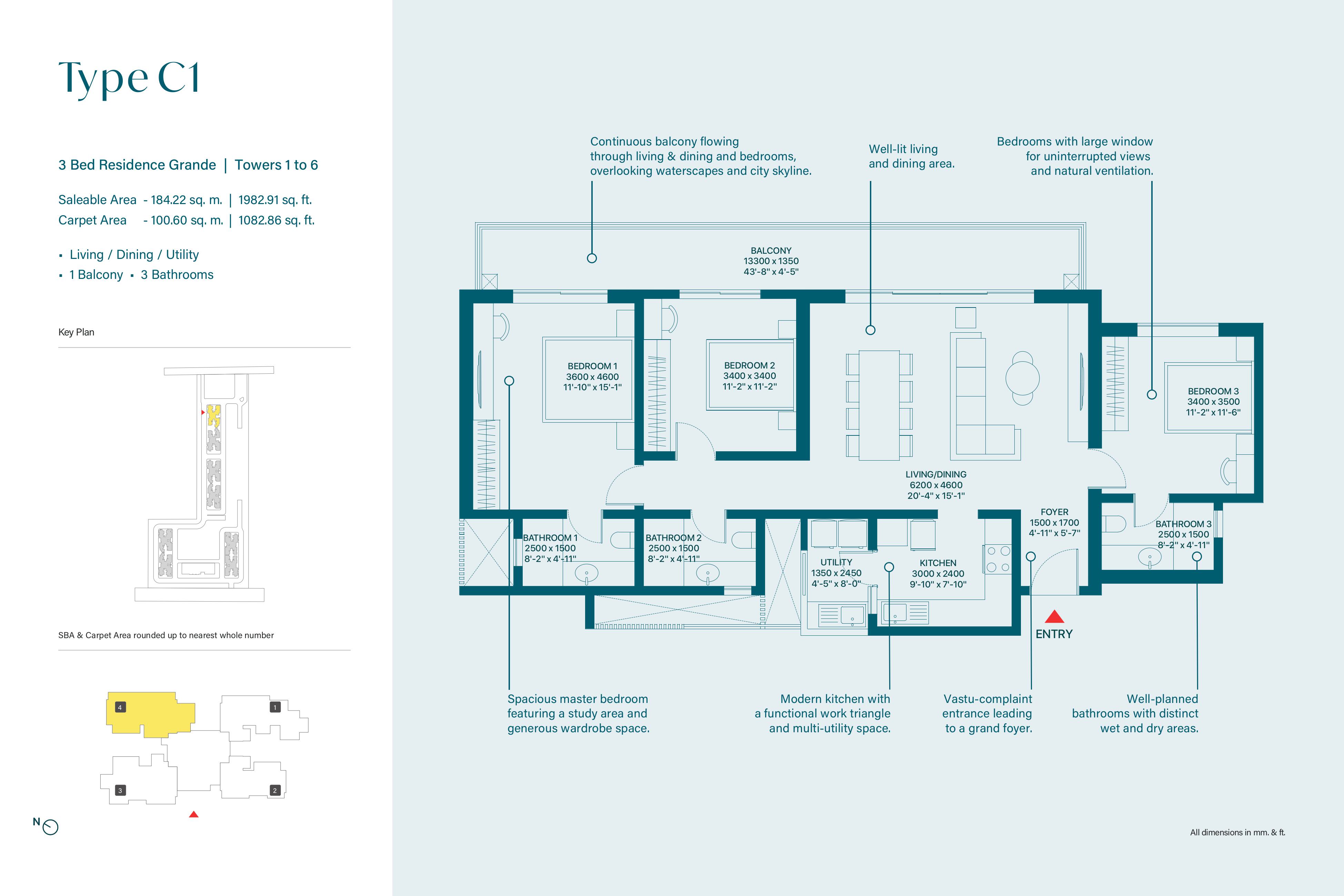 | 3BR+ 3T | 1982 Sq.Ft. | On Request* | Express Your Interest |